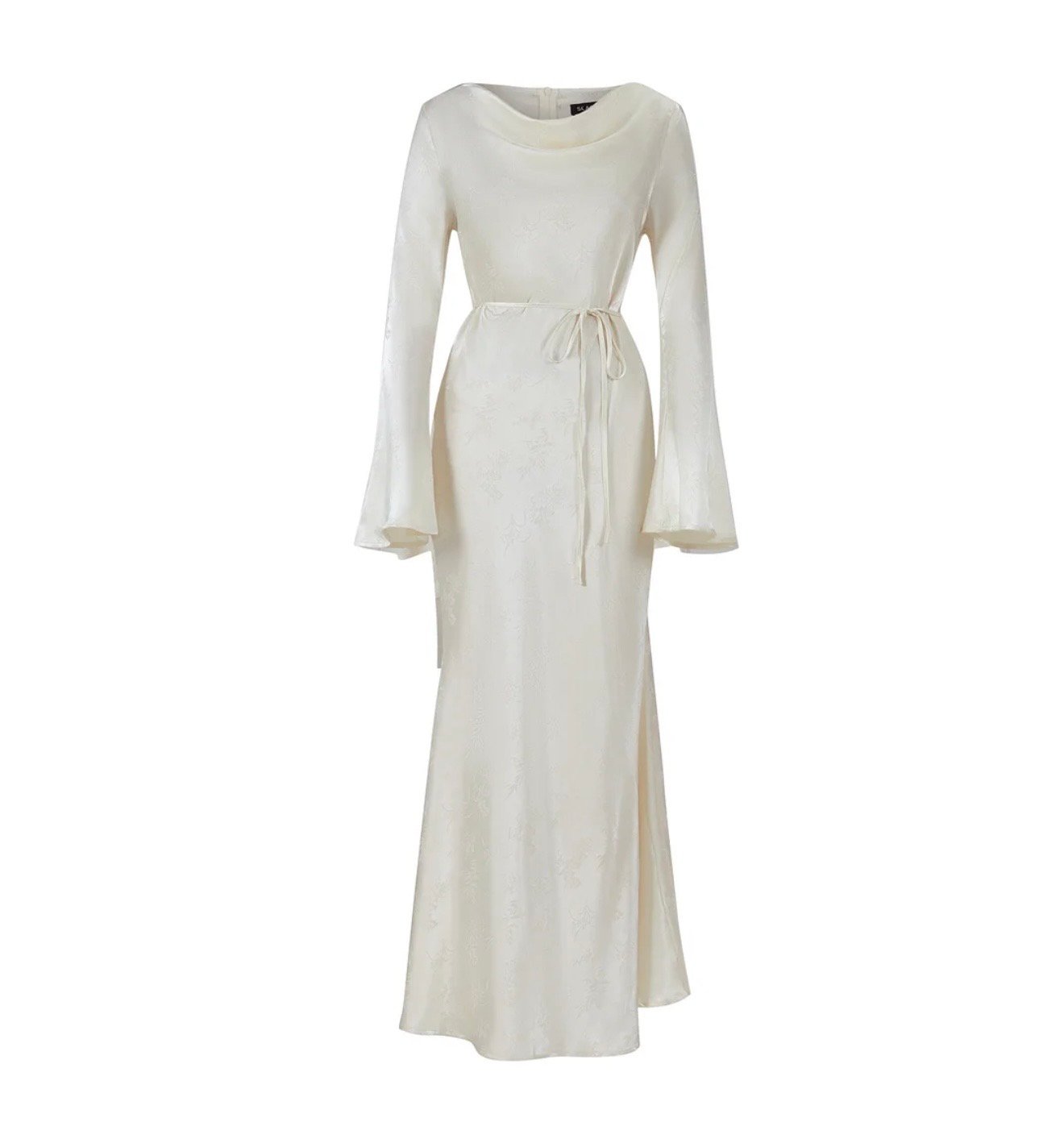 Vestido Jacquard color Champán de manga larga y cuello alto