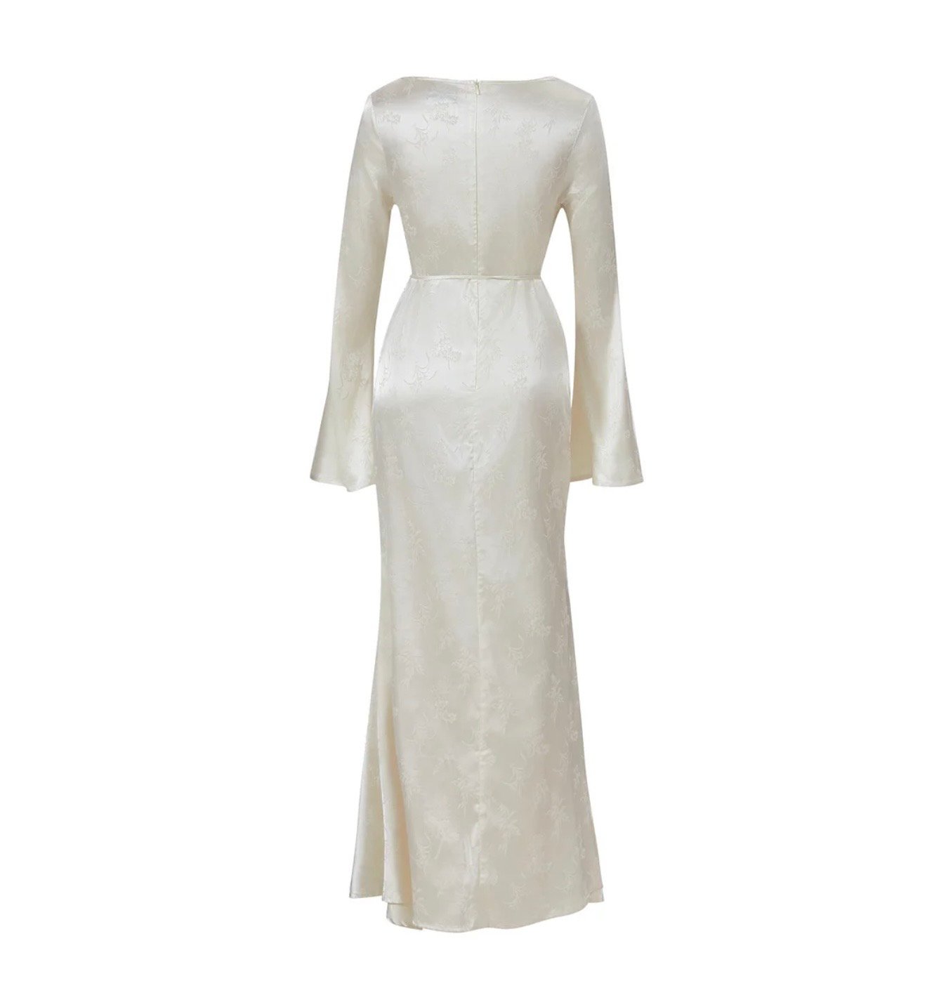 Vestido largo con volantes manga larga acampanadas y cuello en V