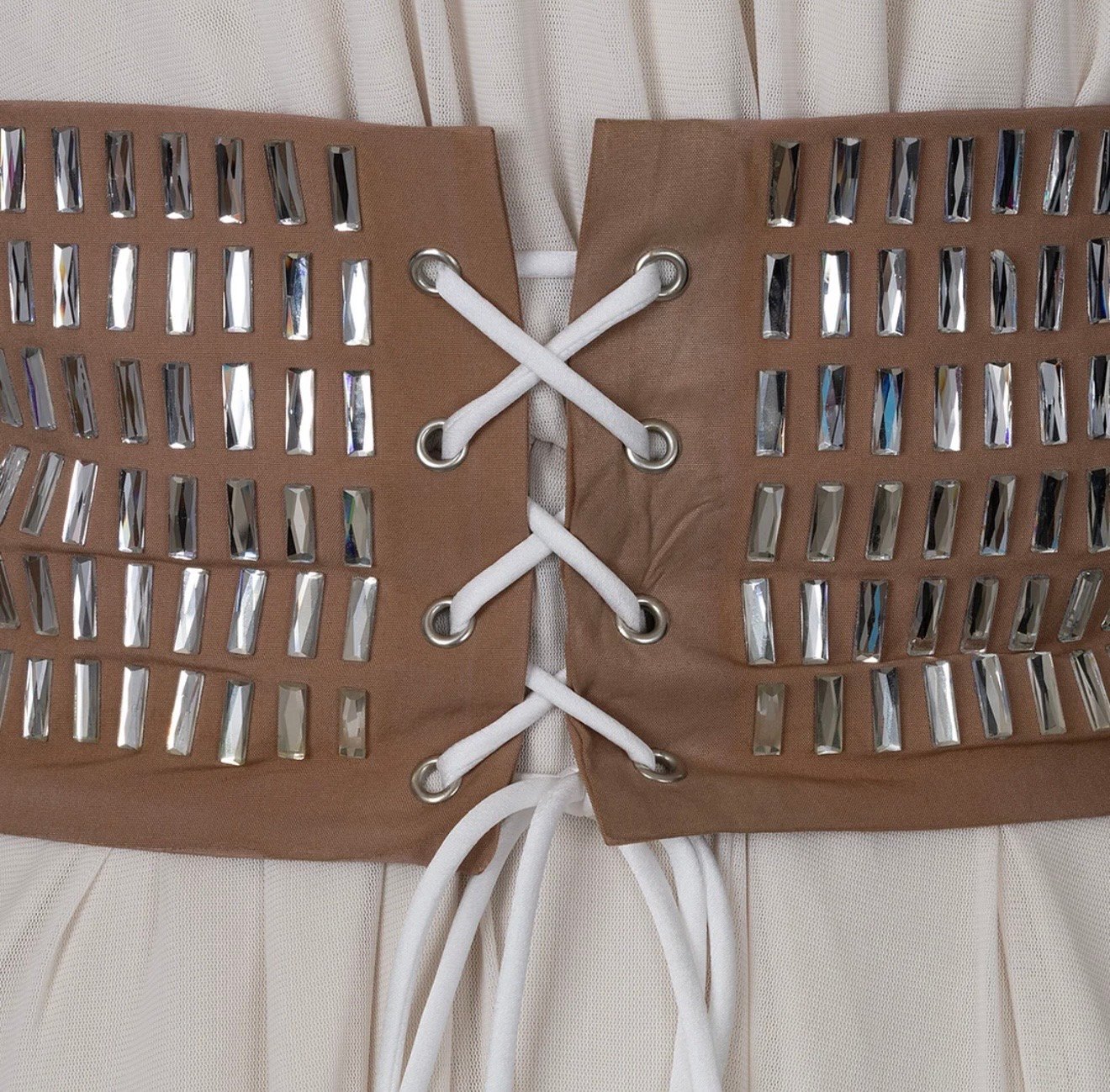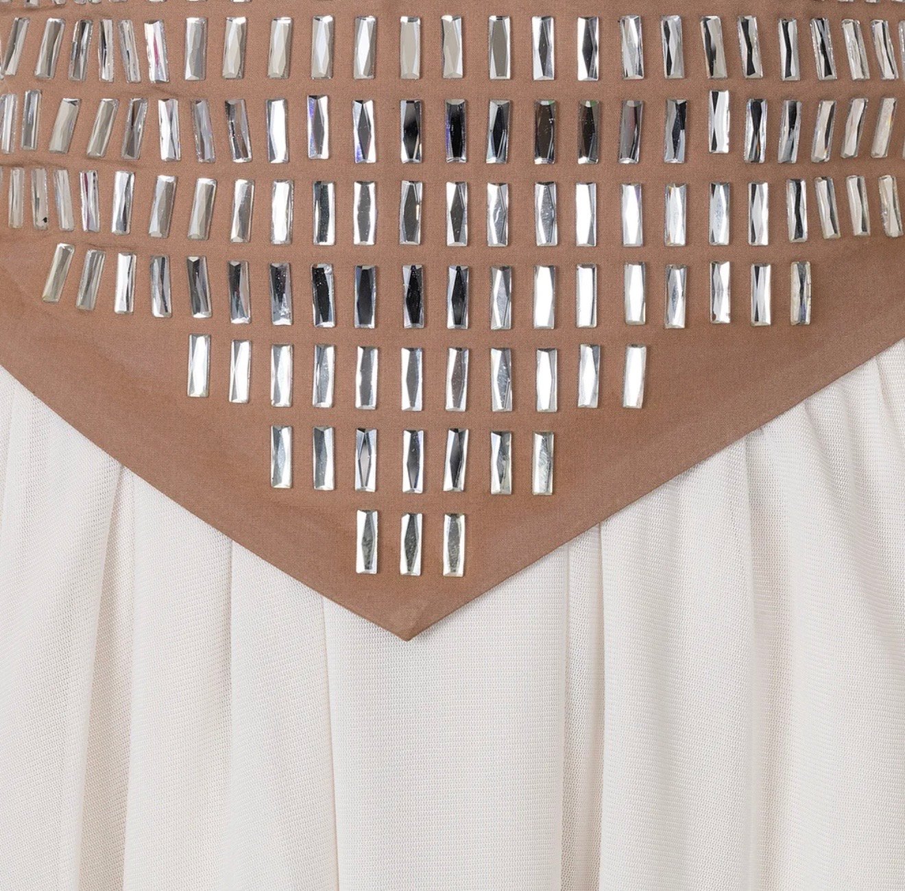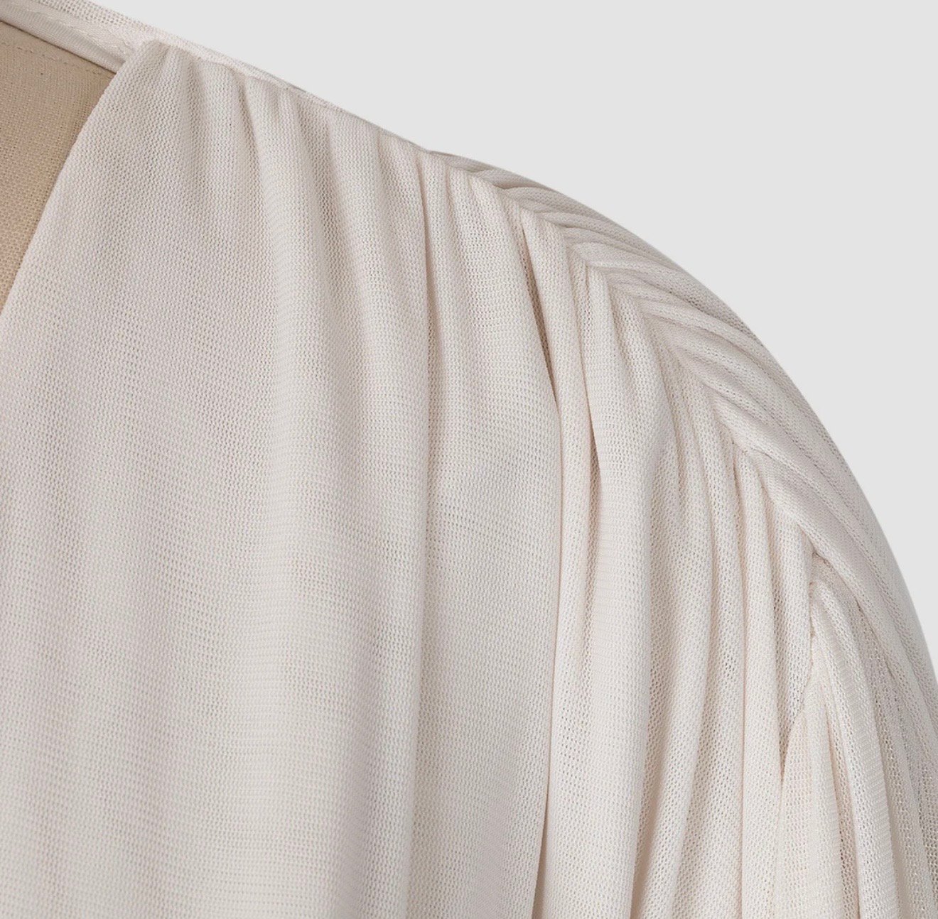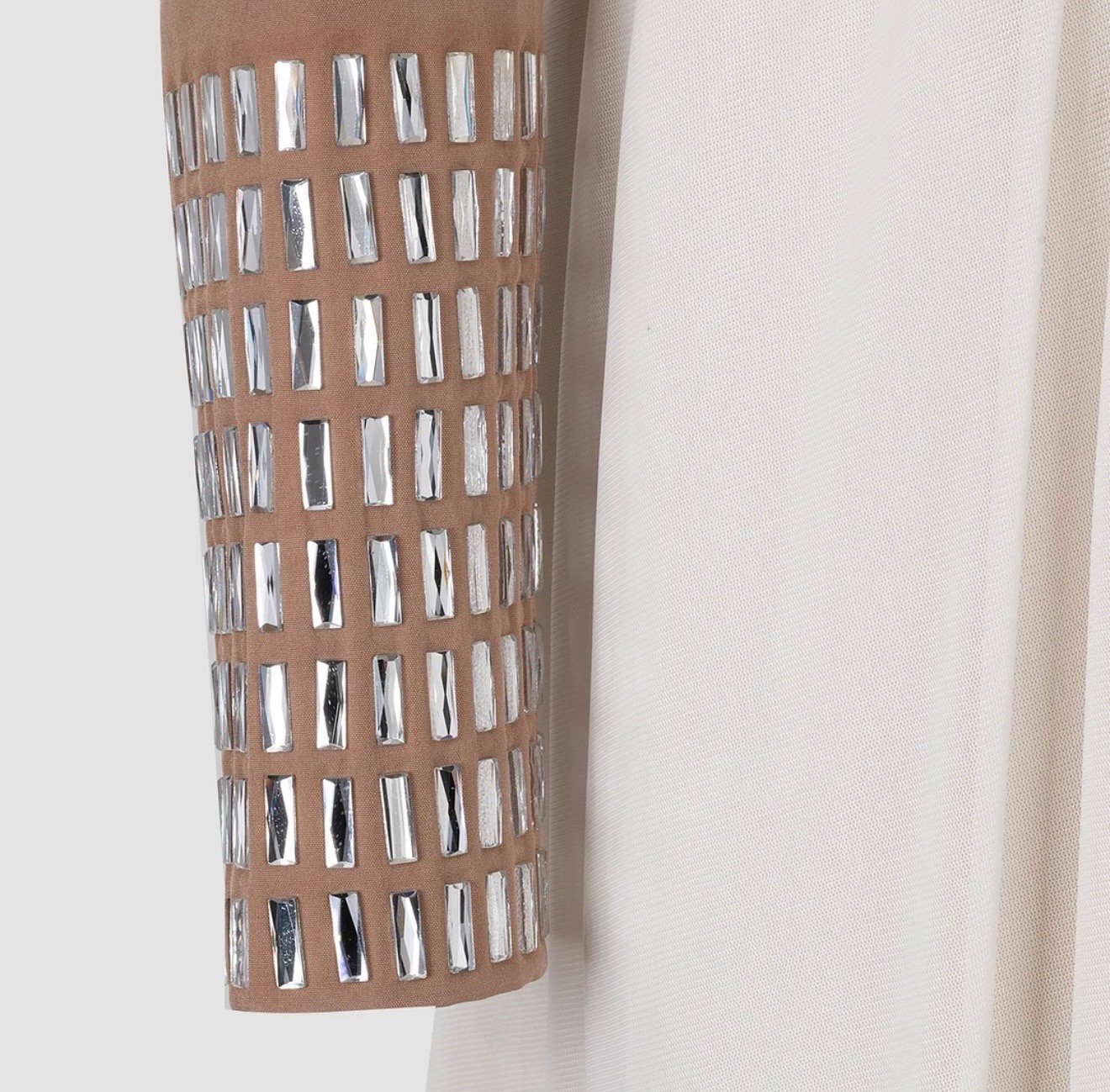 Vestido Jacquard color Champán de manga larga y cuello alto