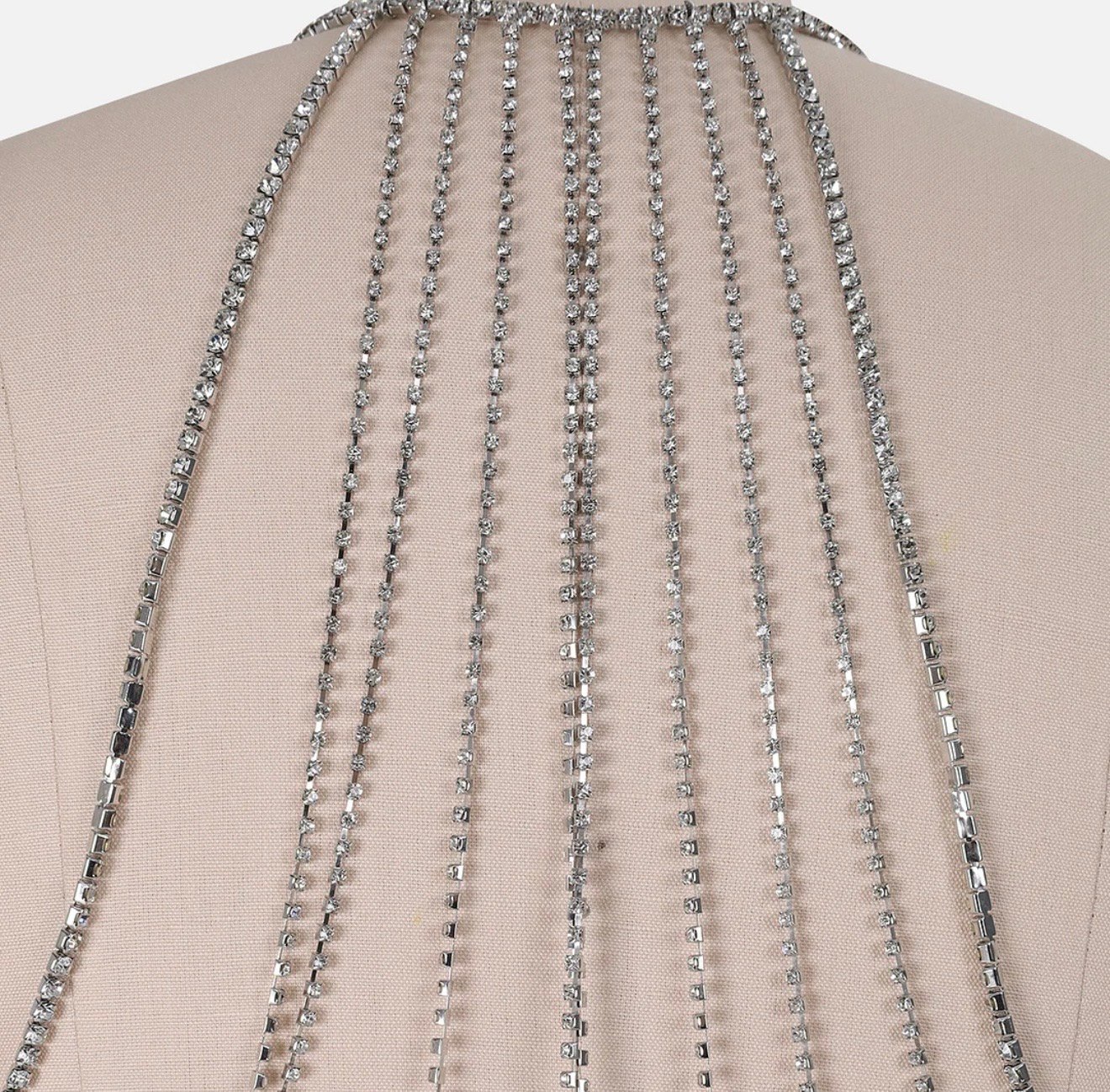 Vestido negro ajustado a la rodilla con espalda descubierta y pedrería cantidad