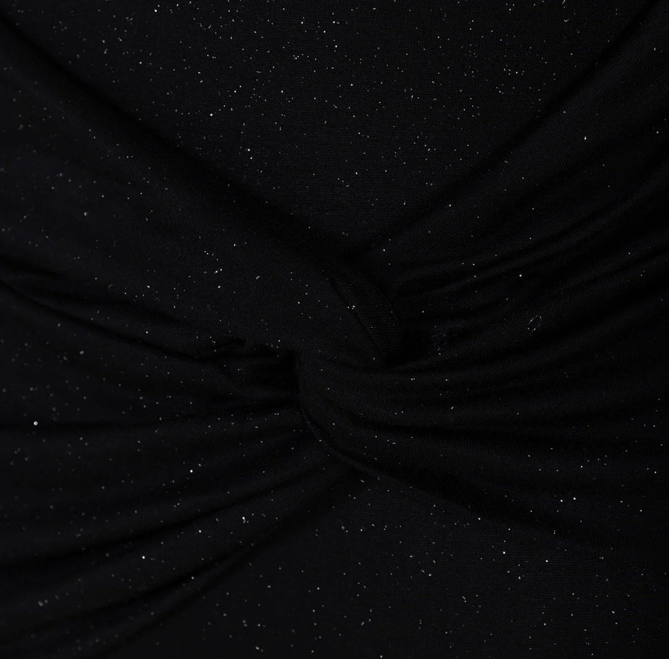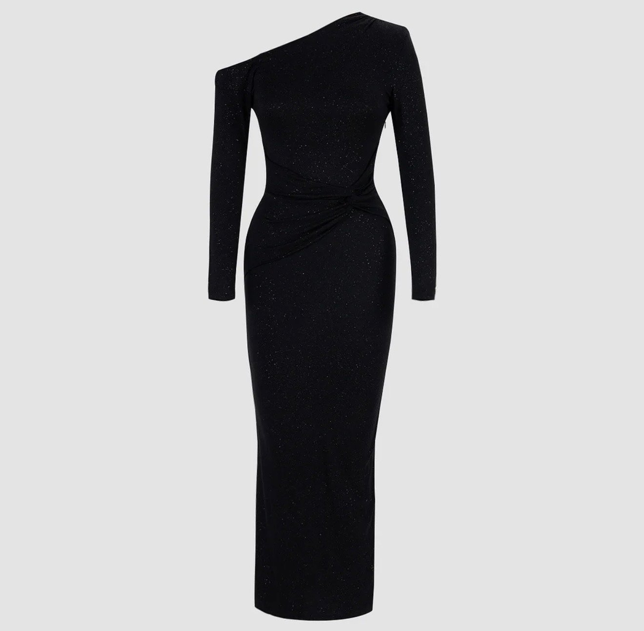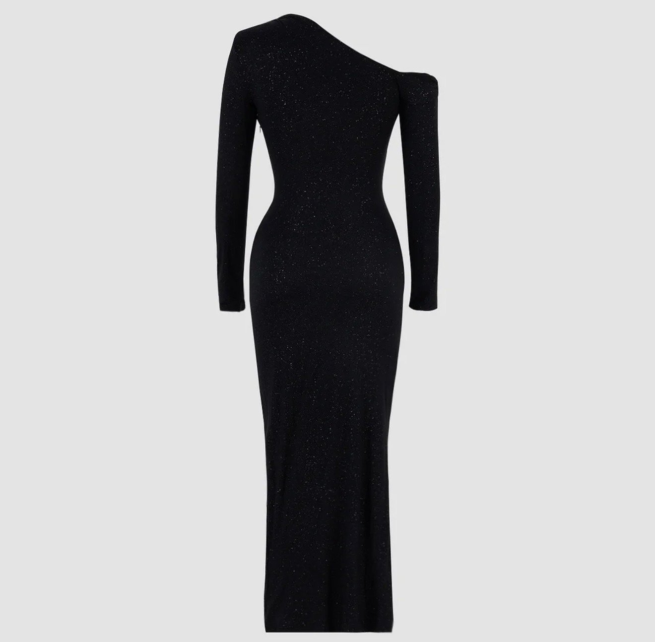 Vestido negro de lentejuelas retorcidas con mangas largas y hombros descubiertos