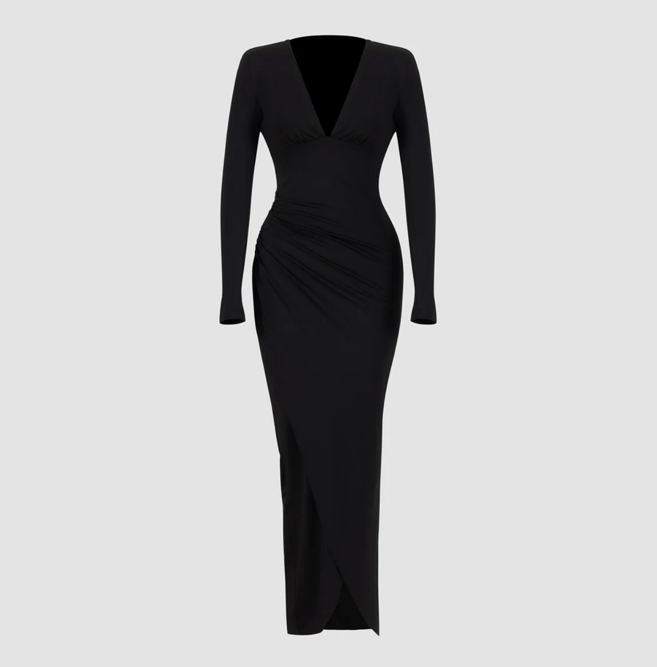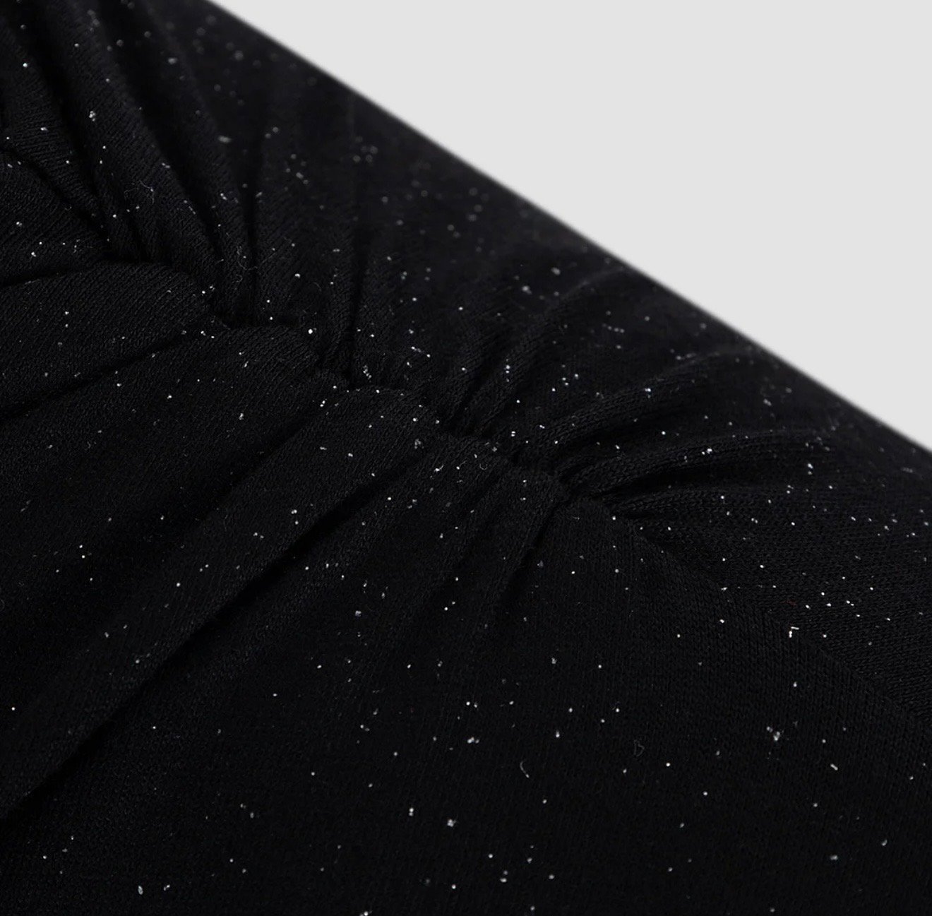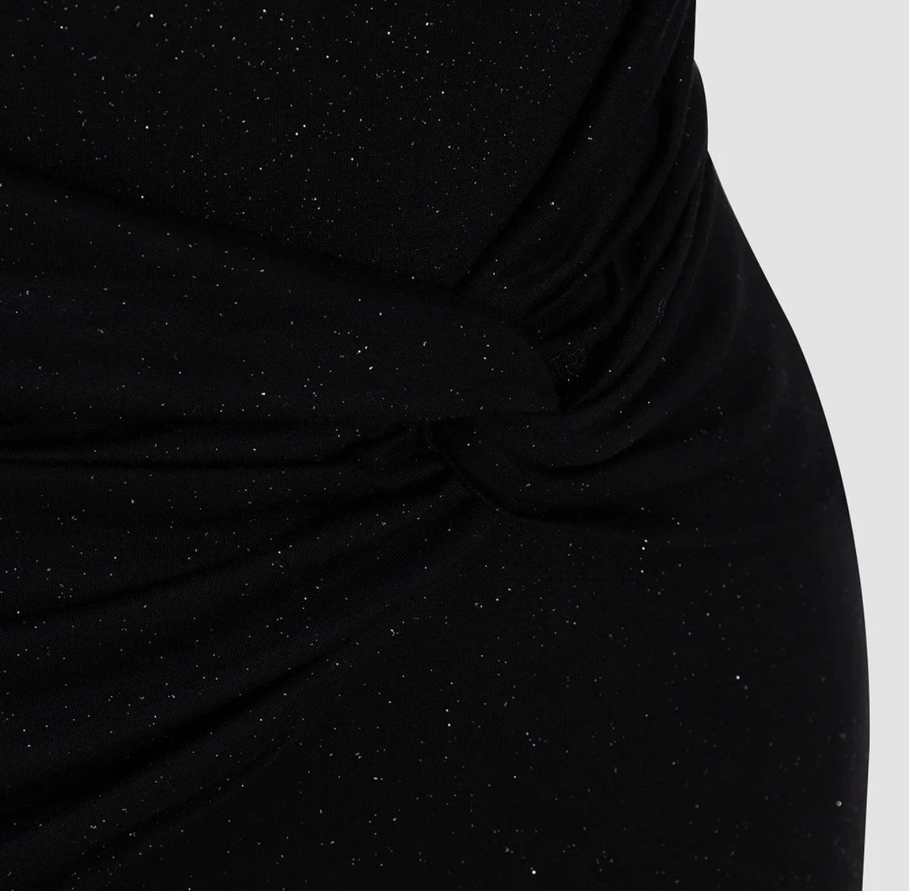 Vestido negro de lentejuelas retorcidas con mangas largas y hombros descubiertos