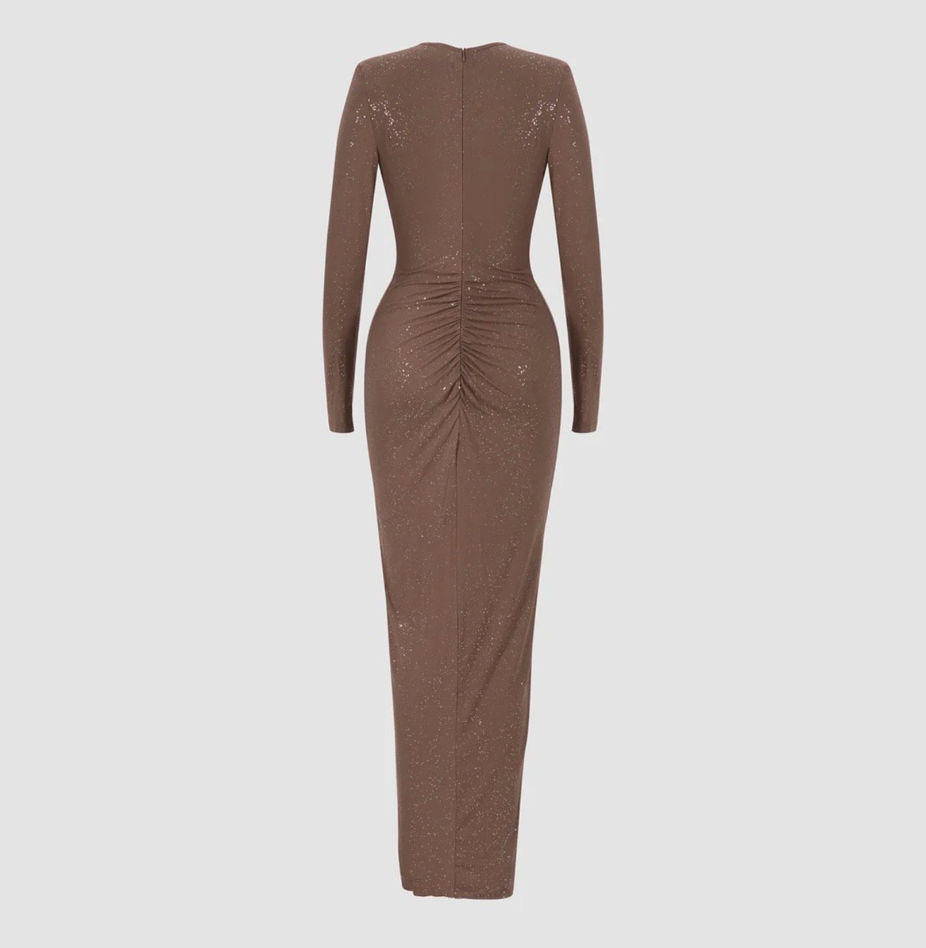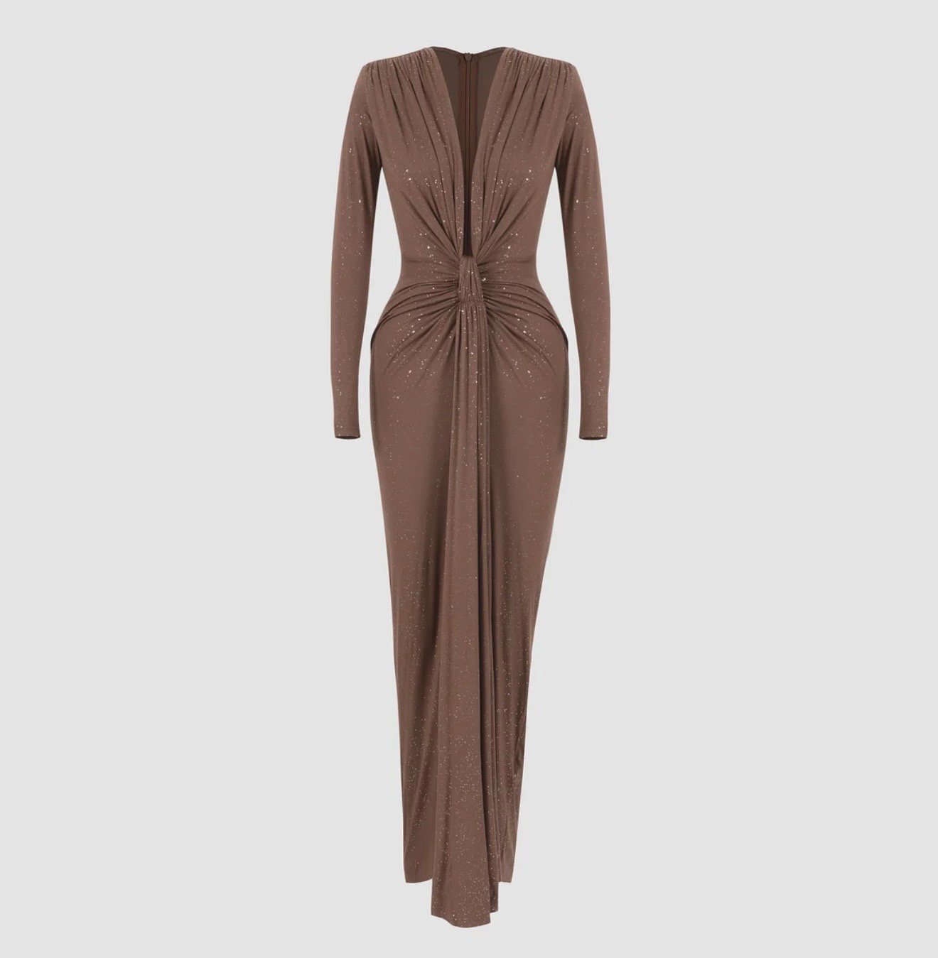Vestido plisado de lentejuelas manga larga y escote en V profundo